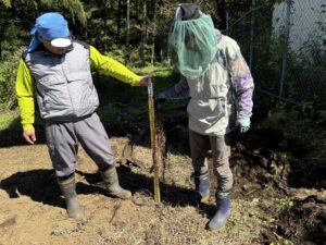生長の家富士河口湖練成道場では、真夏を除いて毎月1回、有機農業の知識と経験の豊富な方(Fさん)の指導を受けて、「有機農法勉強会」を行っています。この勉強会には、生長の家飛田給練成道場から4名の方も参加されて、一緒に研鑽していて、今月は26日に行われました。これは生長の家が進める「自然と共に伸びる運動」の一環として行っていて、地球から奪わない、他の生物とも共生する生き方の実践です。